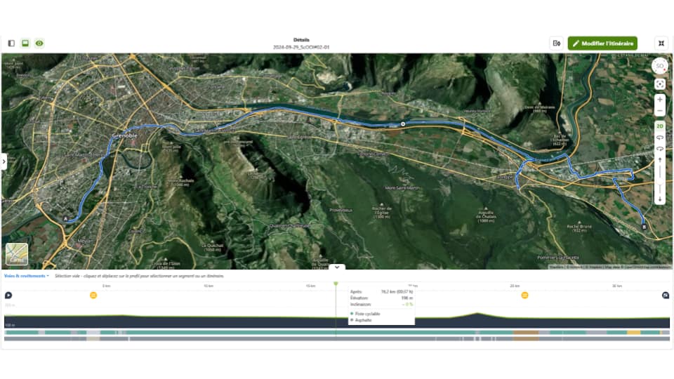 83km / 110 m de dénivelé départ de Gières Campus Sésame, en passant par Voreppe, jusqu’à La Buisse